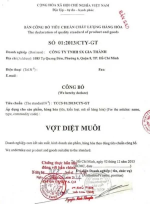 - Tên doanh nghiệp: Vợt Muỗi Gia Thành - Công Ty TNHH Sản Xuất Gia Thành